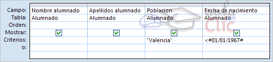 Es decir saldrán los alumnos de Valencia Y nacidos antes del 67.