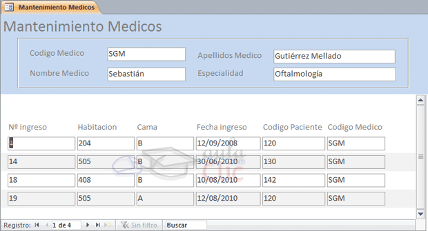 - Modifica el formulario Ingresos por médico creando en temas anteriores para que tome el siguiente aspecto, pero sin tener en cuenta el estilo: