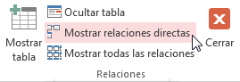 o bien, hacer clic sobre la tabla para seleccionarla y hacer clic en el botón Mostrar relaciones directas en la pestaña Diseño.