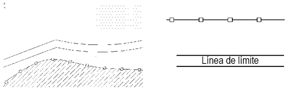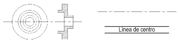 Ahora bien, no se trata de aplicar distintos tipos de línea a los objetos sin ningún criterio. De hecho, como pudo observar en los nombres y descripciones de los tipos de líneas en la ventana del "Administrador de tipos de línea", muchos de los tipos de línea tienen fines específicos muy claros en las distintas áreas del dibujo técnico. Por ejemplo, en un dibujo de ingeniería civil, puede ser muy útil el tipo de línea para mostrar instalaciones de gas. En el dibujo mecánico, las líneas ocultas o de centro se utilizan constantemente, etcétera. Lo siguientes ejemplos muestran algunos tipos de líneas y su uso en el dibujo técnico. De hecho, el usuario de Autocad debe conocer para qué se usan los distintos tipos según el área para la que dibuje, ya que éstos conforman todo un alfabeto de líneas.