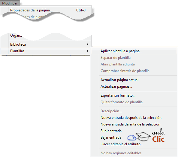 Una vez abierto el documento, hay que dirigirse al menú Modificar, Plantillas, opción Aplicar plantilla a página.