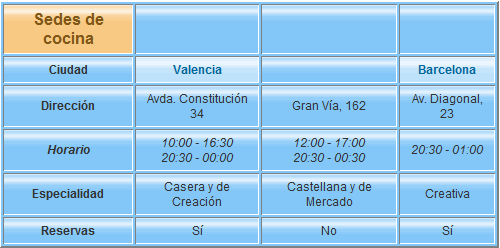 - Haz clic sobre la celda donde pone Sedes de cocina.