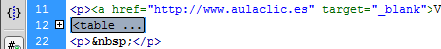 Una de las ventajas de Dreamweaver es la posibilidad de seleccionar fragmentos de código y contraerlos para facilitar su legibilidad.