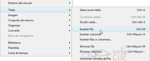 Para insertar una fila o una columna, hay que pulsar sobre las opciones Insertar fila o Insertar columna.