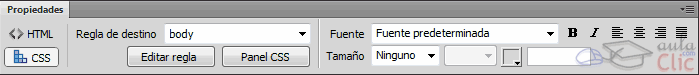 Mediante el inspector de propiedades en Dreamweaver CS5 accedemos tanto a las propiedades de CSS como a las propiedades de HTML.