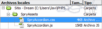 Esto es muy sencillo de conseguir. Cada vez que insertamos un control de este tipo se crean dos nuevos archivos en la carpeta llamada SpryAssets en nuestro sitio. Uno de ellos es un archivo JavaScript que contiene el código necesario para el buen funcionamiento del control, nunca modifiques este código, salvo que realmente entiendas qué estás haciendo.