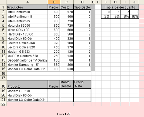 El siguiente segmento de hoja, Figura 1.28, contiene un ejemplo de uso de estas funciones