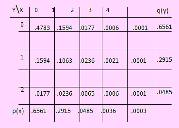p(0, 3) = p(3, 0) = C(3, 3)(0.1)3(0.9)4 = (0.1)3(0.9)4. p(0, 4) = p(4, 0) = 0.