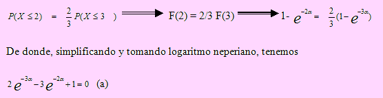 Si X tiene distribución exponencial con α su parámetro entonces, usando la condición propuesta tenemos