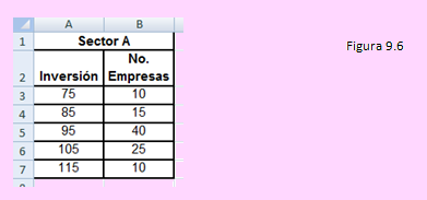 Ante todo ingresamos la tabla a una hoja del Excel, como se muestra en el siguiente segmento de hoja: