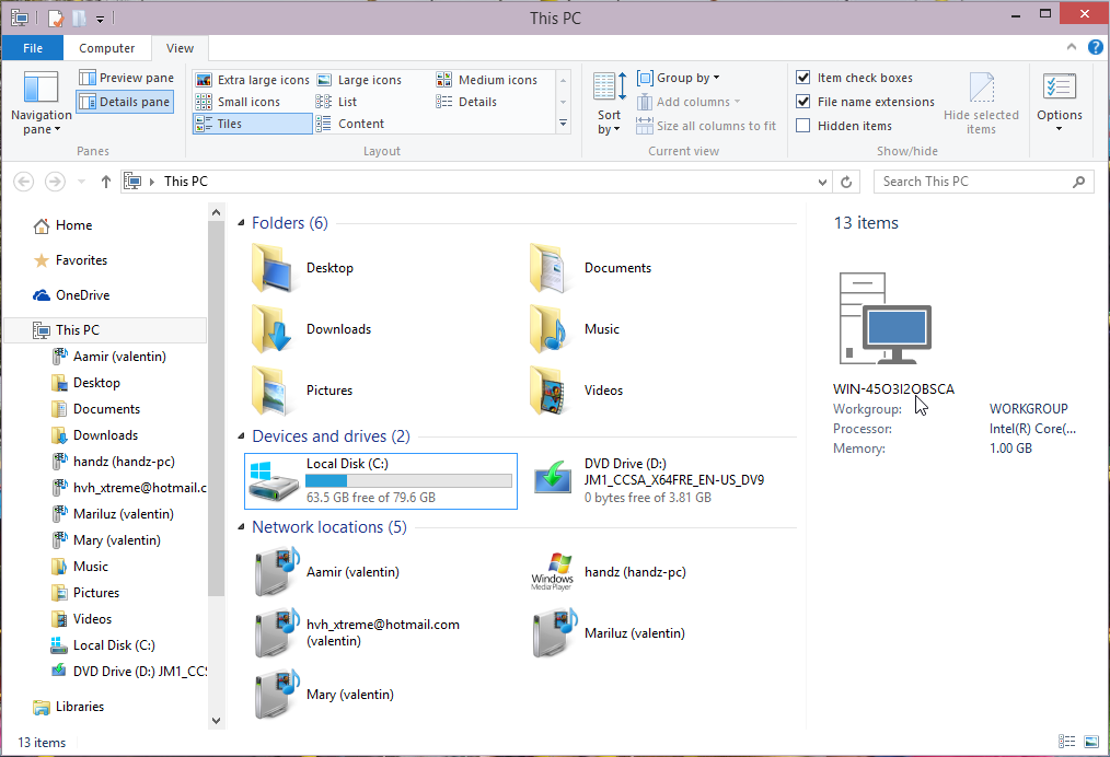1. Pulse doble clic en el icono This PC en el escritorio y observe el panel Detalles de la ventana, puede ver que el nombre del equipo es WIN-45O3I2OB5CA.