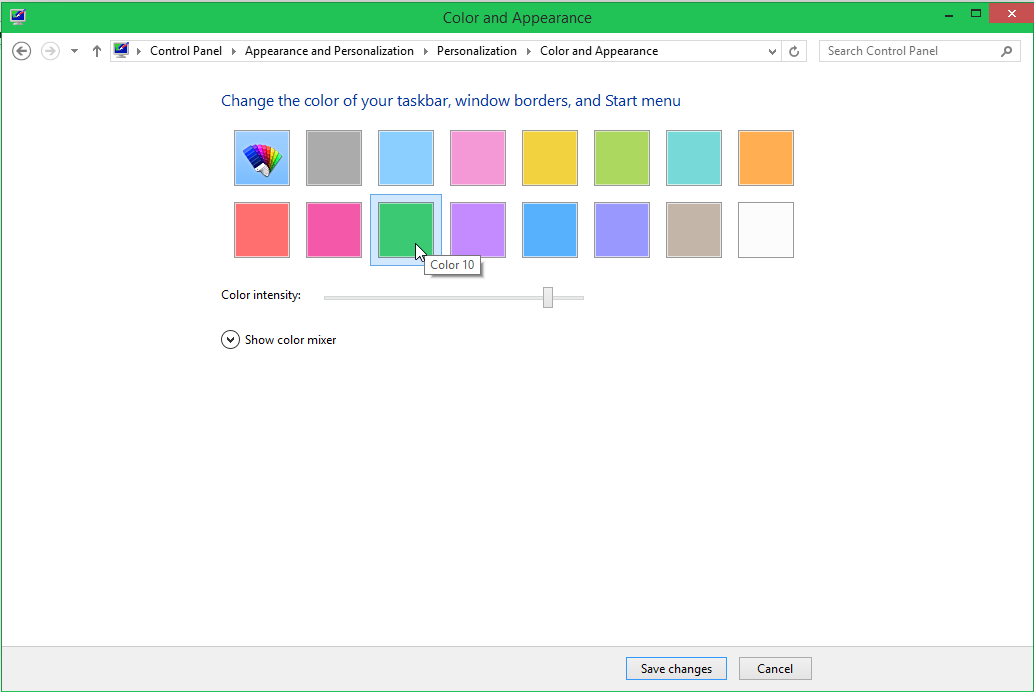 3. En la ventana Window Color and Appearance haga clic en cualquier color. Observe como el nuevo color elegido se aplica a la ventana.