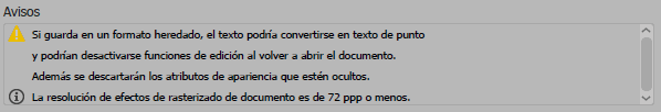 Las incompatibilidades con la ilustración siempre se muestran en la sección Avisos de la propia ventana, en la parte inferior.