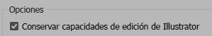 Aún así, a pesar de tratarse de formatos nativos, debemos activar algunas opciones cuando grabamos en algunos de estos formatos. Por ejemplo, en PDF y SVG debemos activar la casilla Conservar capacidades de edición de Illustrator en el cuadro de diálogo para que conserve los elementos mencionados.