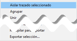 En ocasiones, la edición de un objeto puede llegar a complicarse por la presencia de muchos objetos cercanos. Un error al hacer clic y manipular el ratón puede modificar un objeto no deseado. Para ello tenemos como alternativa la opción Aislar trazado seleccionado en el menú contextual.