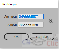 Si hacemos clic directamente sobre el documento, accedemos a la ventana Rectángulo, donde podemos especificar el Altura y Anchura del nuevo cuadrado con la medida que deseemos.