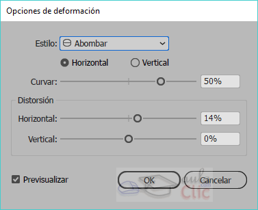 del Panel de control. De ambas formas llegamos a la ventana Opciones de deformación: