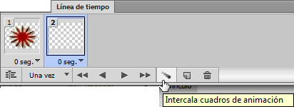 Para hacerlo seleccionamos los dos cuadros entre los que queramos intercalar una animación, y pulsamos el icono Intercalar cuadros de animación.