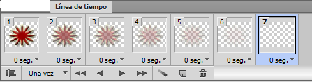 Además, para que la animación sea fluida, el tiempo de los cuadros ha de ser breve. debajo de cada uno se muestra el tiempo que el cuadro será visible. Si hacemos clic sobre el tiempo, podremos cambiarlo.