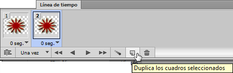 Cuando lo tengamos, creamos otro fotograma. Para ello, usamos el botón Duplicar los cuadros seleccionados.