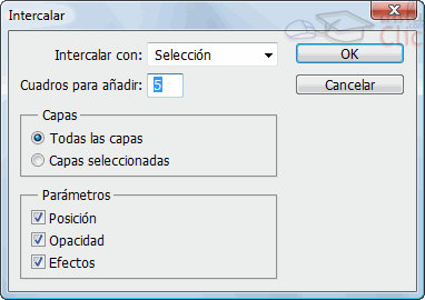En Cuadros para añadir, indicamos el número de cuadros intermedios que se generarán. Cuantos más cuadros, más suave será la animación, pero de mayor tamaño será el gif final.