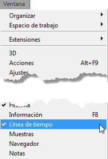 Una vez tengamos los elementos accedemos a la barra de animación, en el menú VentanasLínea de tiempo: