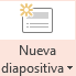 - En la pestaña Inicio, depliega el menú del botón Nueva diapositiva haciendo clic justo en la parte inferior del mismo, sobre el texto.
