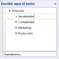 2. Utilizar el Panel de texto, que abre un panel donde podremos ir insertando el texto en forma de esquema, que irá adaptándose a las formas del diagrama automáticamente. Activamos el panel desde el botón