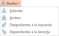 Para entenderlo mejor, observa qué ocurriría con el siguiente diagrama si le aplicáramos los distintos diseños teniendo seleccionada la forma principal Dirección: