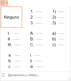 Para elegir el estilo de lista, lo único que hay que hacer es desplegar la flecha triangular situada a la derecha de cada uno de los botones.