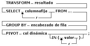 La sentencia TRANSFORM es la que se utiliza para definir una consulta de referencias cruzadas. La sintaxis es la siguiente: |