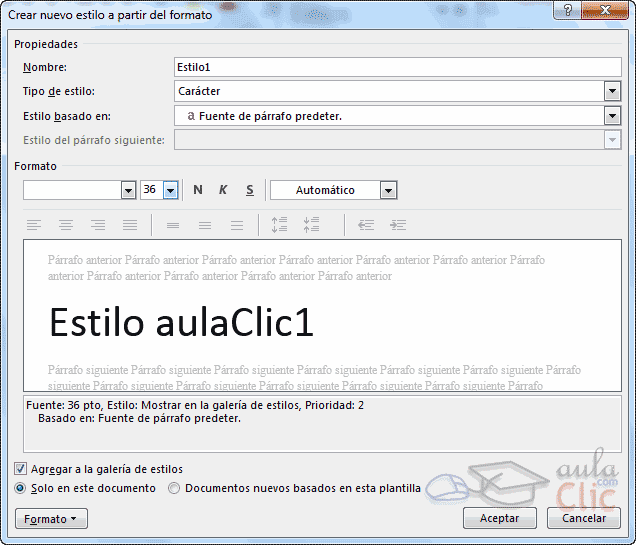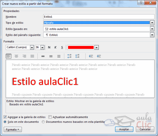 Al crear y modificar estilos tenemos que rellenar un cuadro de diálogo con algunos cuadros y casillas de verificación que conviene explicar con un poco de detalle. Es lo que vamos a hacer en este tema avanzado.