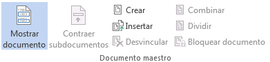Para trabajar con documentos maestros debemos utilizar la vista esquema que vimos en la unidad anterior. Vamos a ver los botones de la barra de esquemas que están destinados al tratamiento de documentos maestros. En el último punto del tema explicaremos más detalladamente el uso de estos botones.