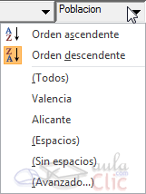 . En el cuadro de diálogo Destinatarios de combinar correspondencia pulsamos en el encabezado del campo correspondiente, en este caso Población, y se desplegará