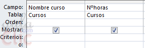 3. Haz clic sobre la fila Criterios: de la columna nºhoras.