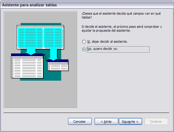 Una vez hayas decidido qué tabla quieres analizar podrás elegir entre dejar que Access haga todo el trabajo o crear tú mismo las tablas con los datos ajustados.