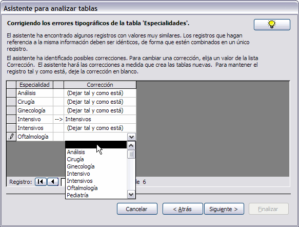 Aquí Access presentará los valores que no estén repetidos para que puedas evaluar si realmente deberán crearse registros únicos para esos valores o es que se trata de un error de tipografía.