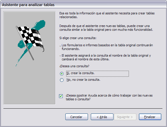 Si en este último paso seleccionas No, no crear una consulta la base de datos permanecerá tal y como estaba y se añadirán las dos nuevas tablas que has creado.