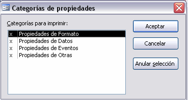 En este caso tenemos un botón adicional Propiedades... que nos permite seleccionar la pestaña de propiedades que queremos documentar.