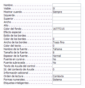 Su uso parece obvio, pero nos puede ser muy útil para cargar información en el formulario que no sea visible para el usuario pero sin embargo sí sea accesible desde el diseño. También podemos utilizar esta propiedad para ocultar controles, para mostrarlos pulsando, por ejemplo, un botón. |