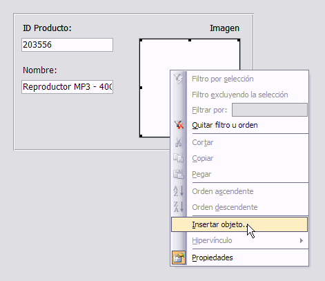 Así, una vez creado el formulario, podremos incluir el tipo de archivo que queramos simplemente haciendo clic derecho sobre el control y seleccionando la opción Insertar objeto....