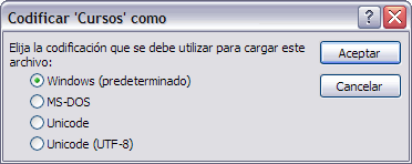 Aquí podrás seleccionar el tipo de codificación de los datos de tipo Texto de la tabla. Aunque el predeterminado sea Windows, Unicode (UTF-8) suele ser el formato que mayor compatibilidad presenta. Aunque si tu intención es seguir trabajando dentro de la plataforma Windows deja la opción predeterminada seleccionada.