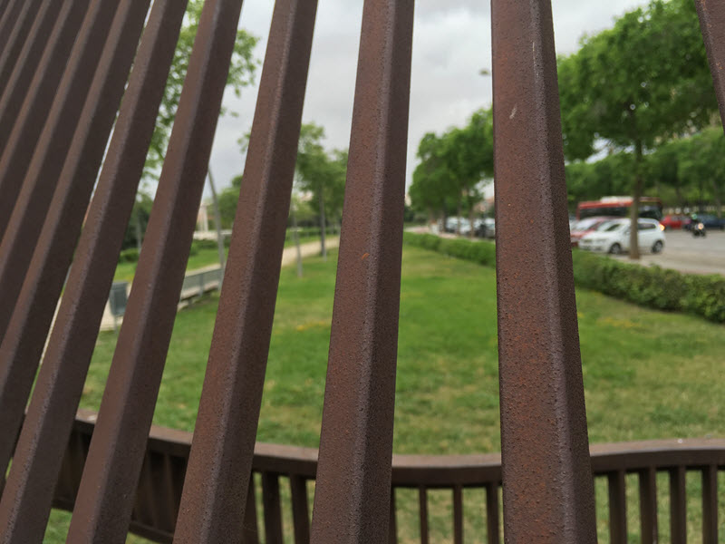 La imagen que ves a continuación se ha realizado con el enfoque automático, como ves los barrotes están enfocados y el fondo desenfocado. Si queremos que el fondo salga enfocado debemos hacerlo enfocando manualmente ya que el iPhone siempre enfocará los barrotes. Basta con tocar en el fondo y obtendremos la imagen con el fondo enfocado. Para ver esta segunda imagen pulsa sobre la imagen, al volver a pulsar se mostrará la imagen original.