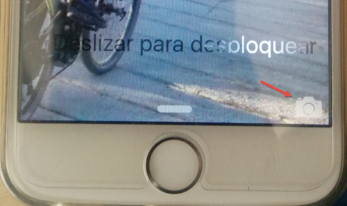 También se puede arrancar la cámara desde la pantalla de bloqueo, basta arrastrar hacia arriba el icono de la cámara que hay en la esquina inferior derecha, como indica la flecha en la siguiente imagen.
