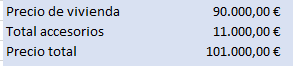 Hemos vuelto a utilizar una celda fuera del formulario como celda auxiliar para el resultado del control. Después debemos evaluar si la celda muestra Falso o Verdadero y en función de ello añadir o no el valor del accesorio al precio de la vivienda.