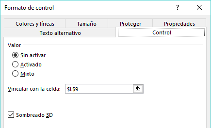 - Mixto. Muestra la casilla con un relleno color gris, pero sin dato definido en la celda vinculada.