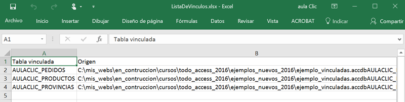 Si esto no es suficiente para nosotros y queremos tener esta información en un documento Excel, en esta versión de Access 2016 se ha creado una nueva opción que crea un documento Excel con esta información de las tablas vinculadas. Esto esta pensado para cuando existen gran cantidad de tablas vinculadas.