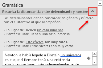 El funcionamiento específico de la revisión ortográfica y gramatical no cambia. Es decir, pulsando F7 se abre un panel en el que se señalan los errores y abajo una serie de sugerencias para corregirlos.