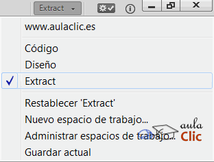 La segunda es utilizar el botón de espacios de trabajo que está en la esquina superior derecha de la ventana del programa y utilizar el espacio de ese mismo nombre, Extract.