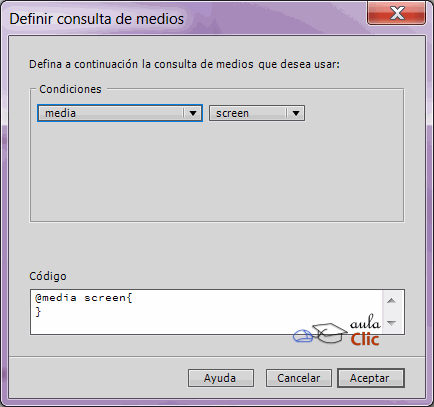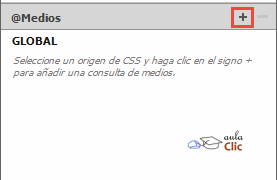 Estas media query, o consulta de medios, pueden realizarse a través del Diseñador de CSS, el cual tiene un subpanel llamado @Medios. Cuando creamos una consulta, ésta aparece en el panel y podemos seleccionarla para crear las correspondientes reglas de estilo.